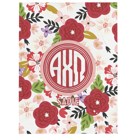 Alpha Chi Omega Personalized Floral Blanket