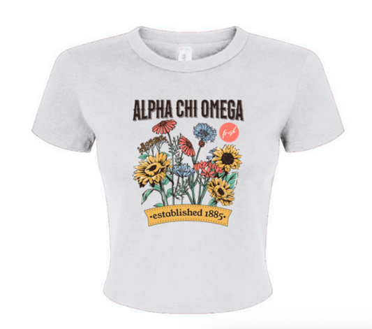 Regular price $32.00 USDRegular priceUnit price / perSale price $32.00 USDAlpha Chi Omega Vintage Flower Baby Tee