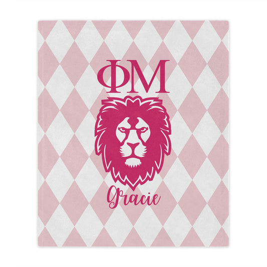 Phi Mu Personalized Pink Lion Blanket