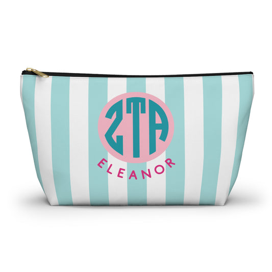 Zeta Tau Alpha Personalized Stripe Makeup Bag