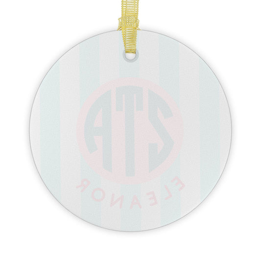 Zeta Tau Alpha Personalized Stripe Glass Ornament