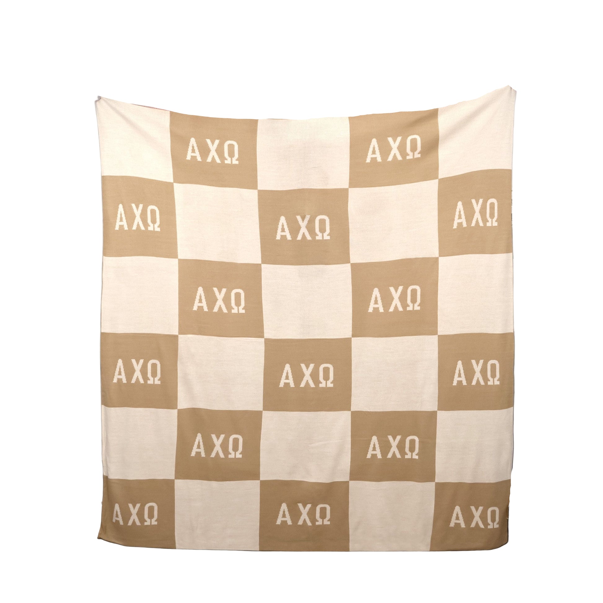 Cozy up in style with this Alpha Chi Omega checkered knit blanket, designed in a chic biscotti and pearl color palette. Soft, breathable, and perfect for year-round use, this acrylic throw adds a warm, stylish touch of AChiO pride to any dorm, apartment, or chapter house.