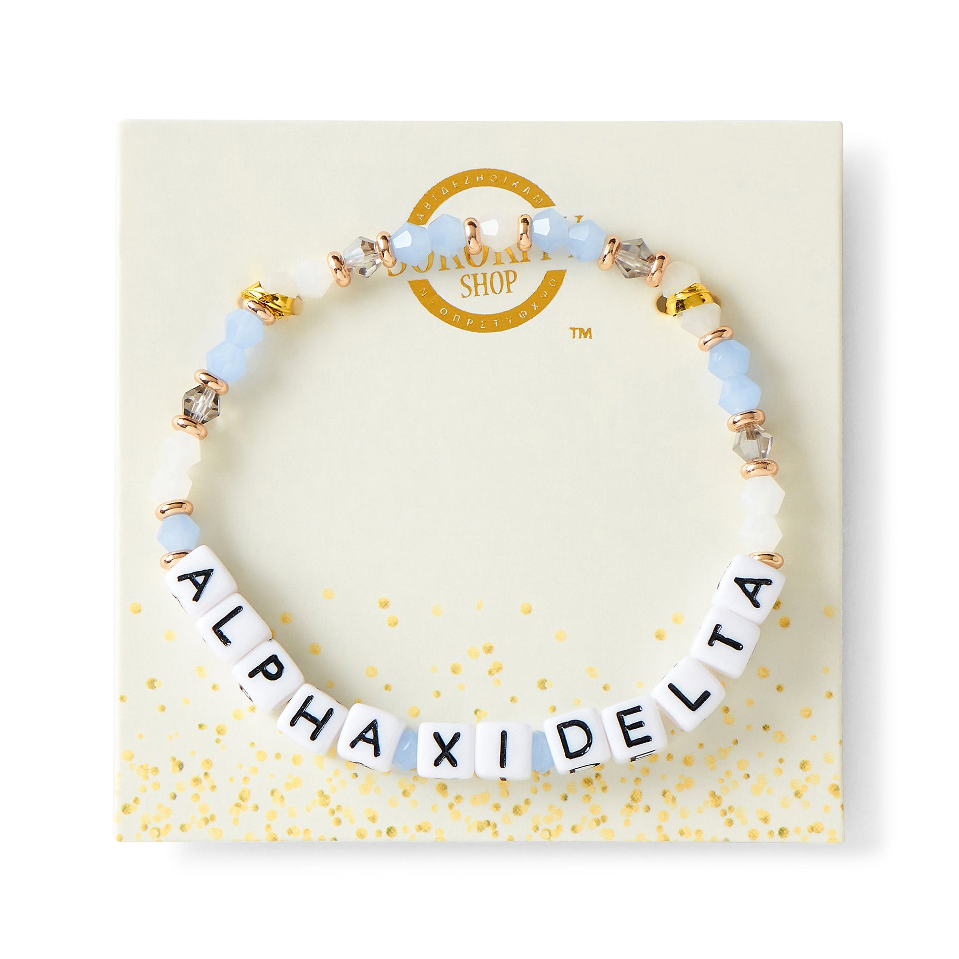 Whether gifting a sister or treating yourself, this Alpha Xi Delta glass bead bracelet is a timeless sorority accessory—meaningful, stylish, and made to be worn on repeat.